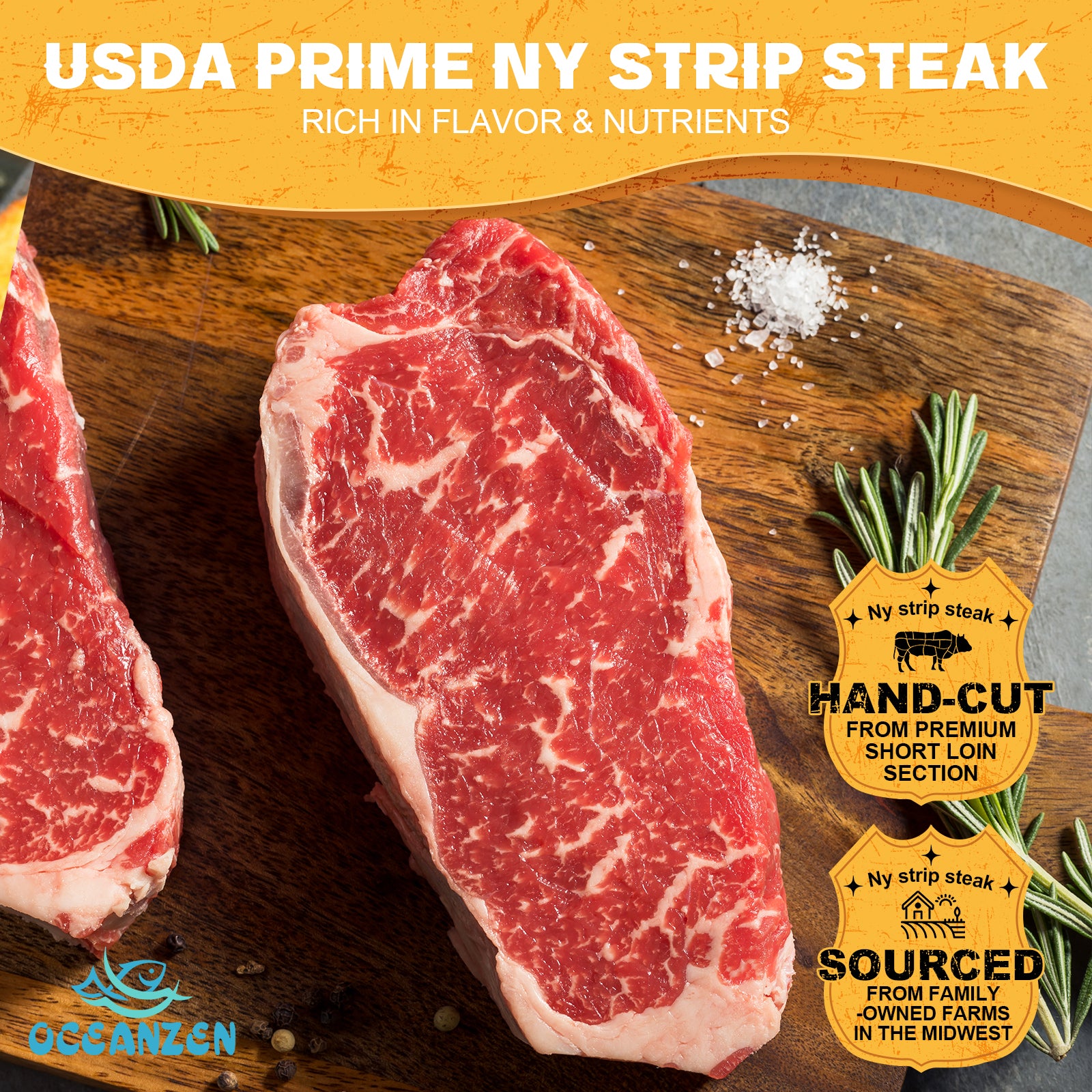 - 【USDA Prime Quality】 Experience the top-tier marbling and rich beefy flavor of USDA Prime New York Strip Steaks, carefully selected for superior tenderness.